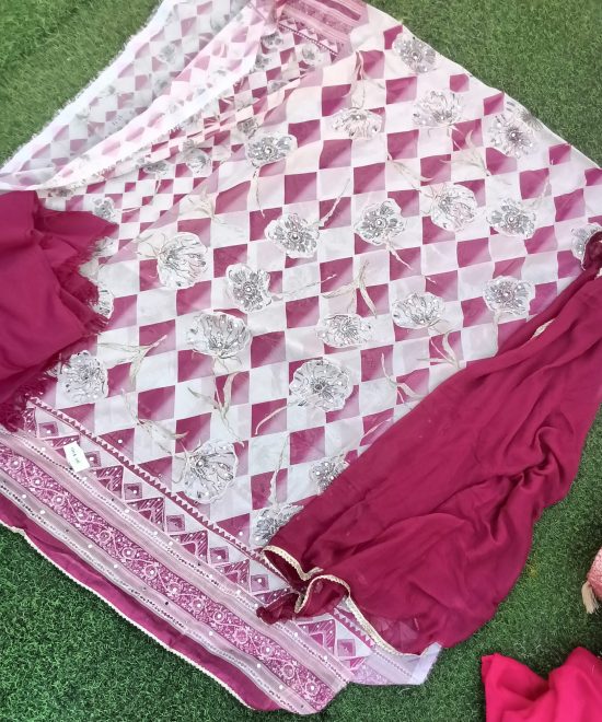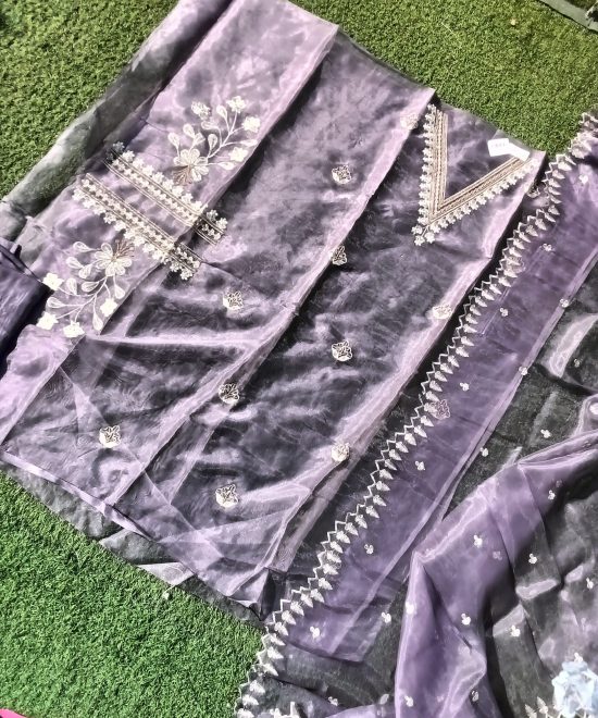 Pure organza shirt with blue embroidery work