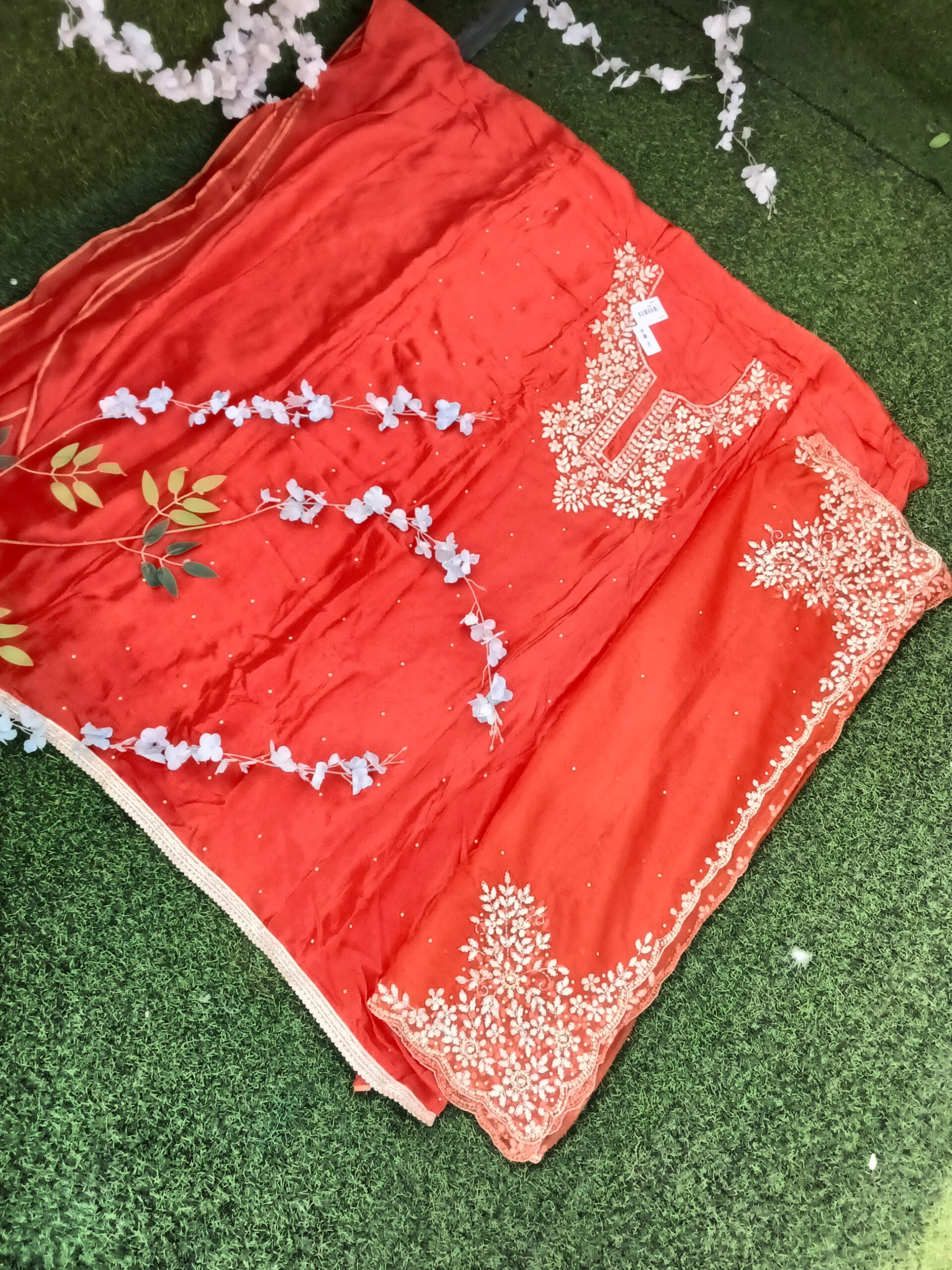 Organza dupatta with embroidery